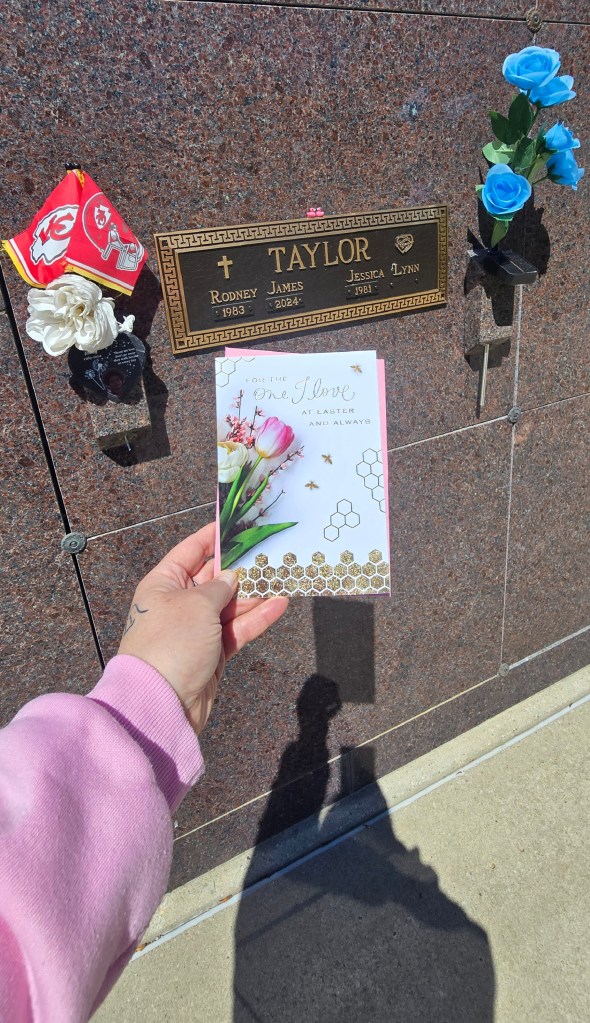 I always get Rodney a card for every holiday. I write him a little note inside, just something to remind him how special that day is to me and how much I still think of him. Then I seal it up and leave it with him. It’s one of the ways I still feel connected.